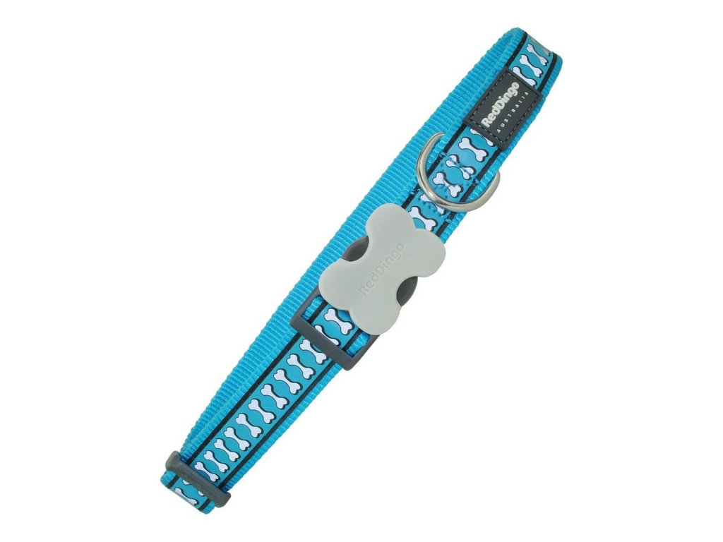 Psí obojek Red Dingo Reflexní Kosti Tyrkysový (2,5 x 41-63 cm)
