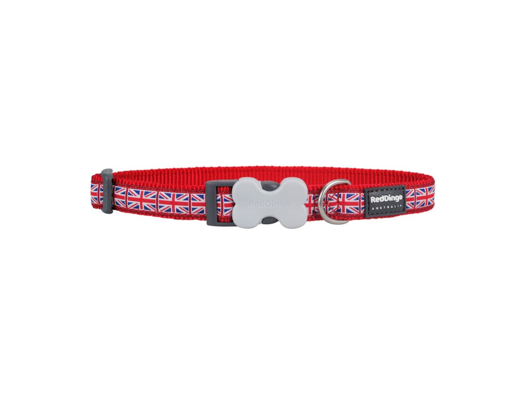 Psí obojek Red Dingo Union Jack 20-32 cm Červená