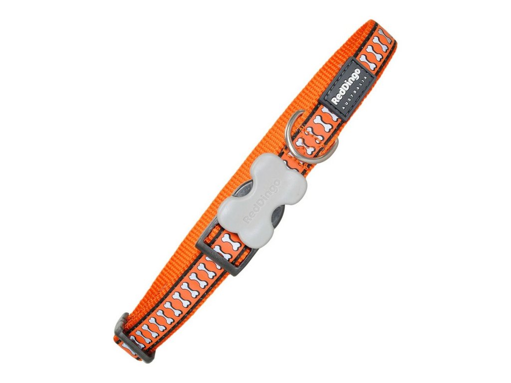 Reflexní obojek pro psa Red Dingo Kosti Oranžová (šířka 2 cm) (obvod krku 31-47 cm)