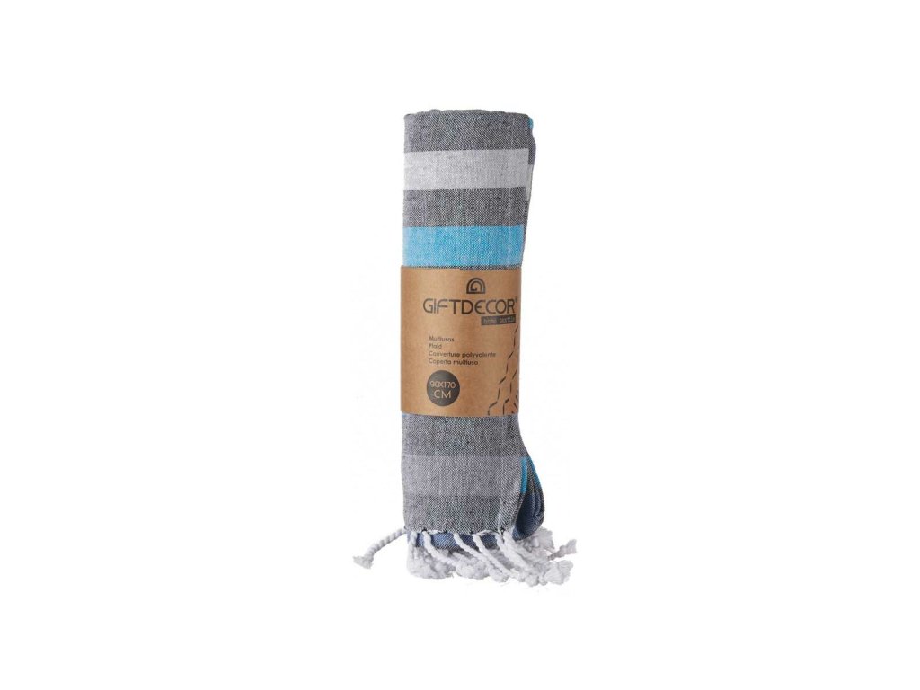 Bavlněná deka s třásněmi Pruhovaná Modrá Béžová Purpurová (170 x 90 cm)