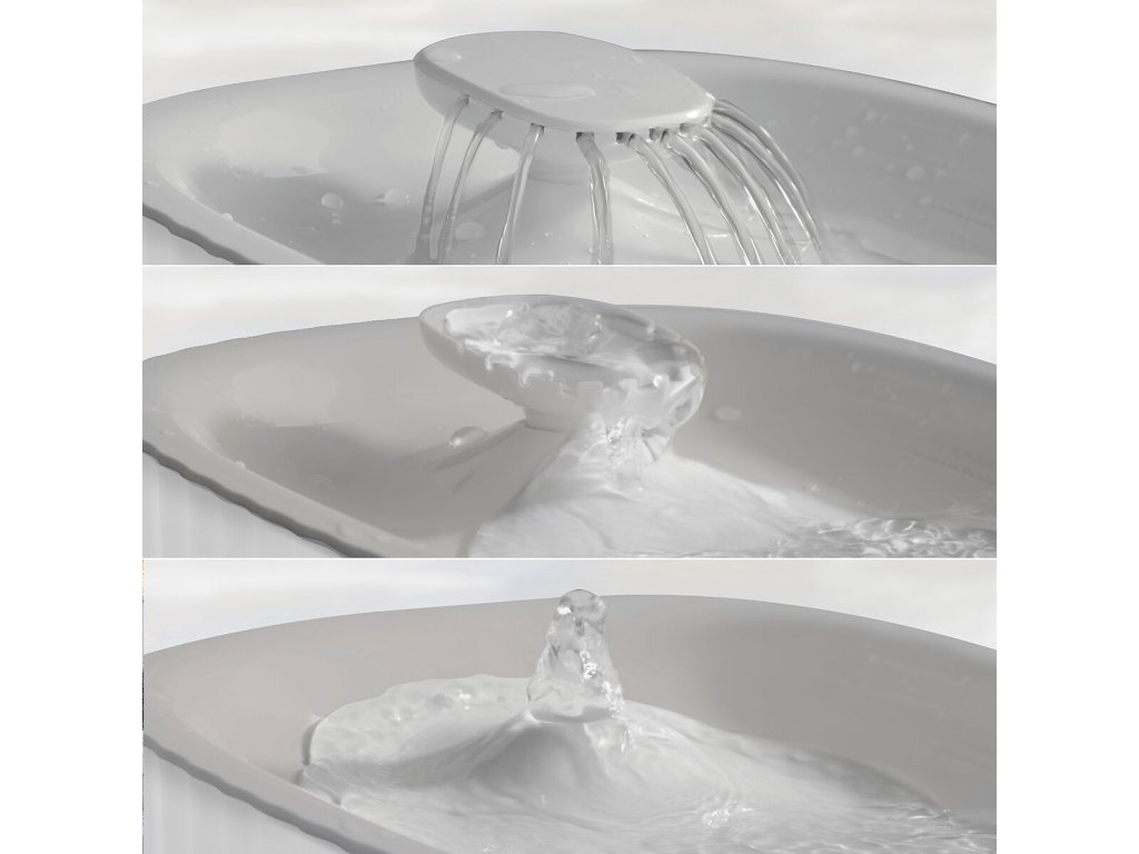 - 3 režimy: 3 druhy proudu (vodopád, pramen, fontána)