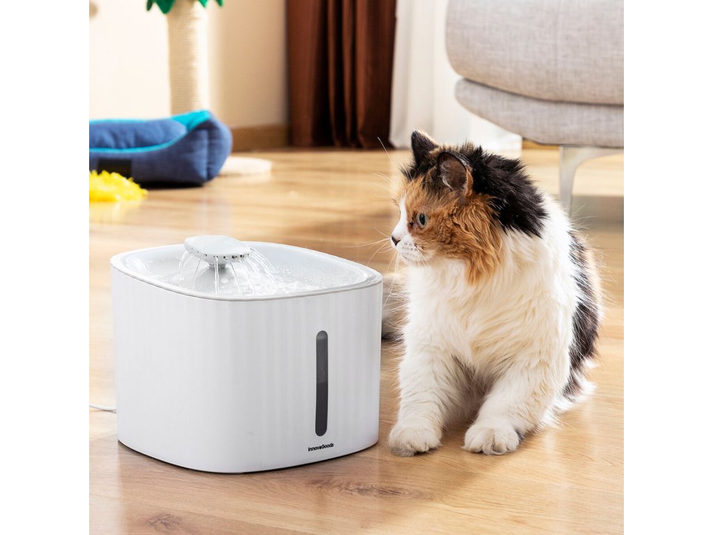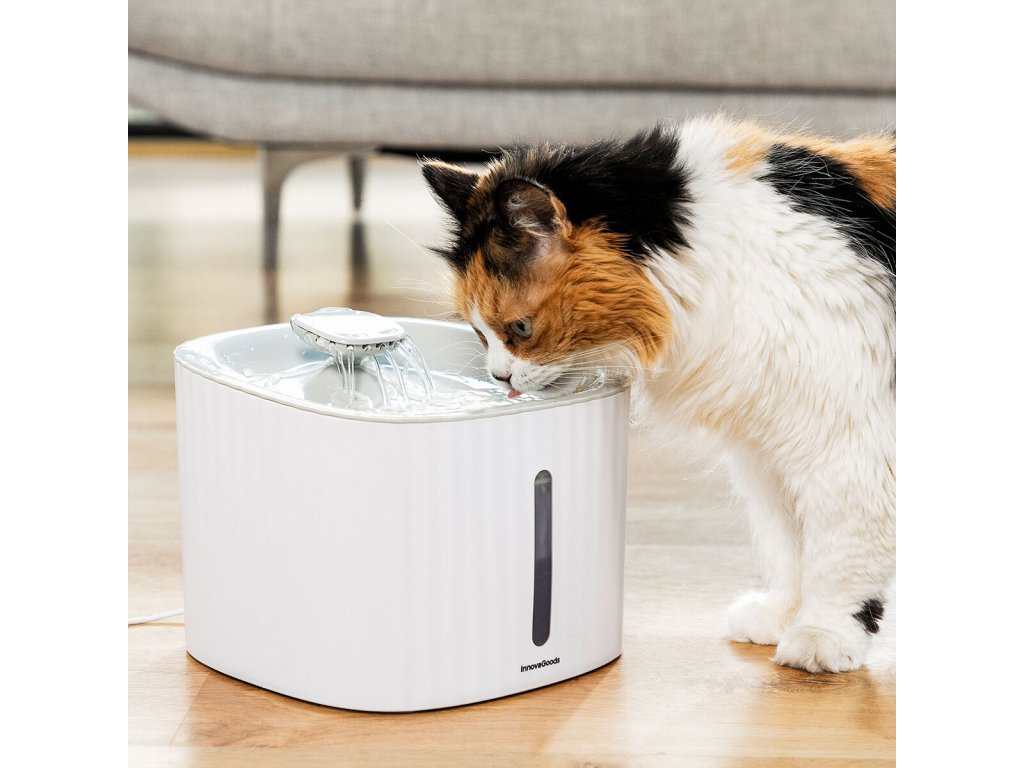 Kašna na pití pro kočky a jiná domácí zvířata Drinkatt InnovaGoods poskytuje kvalitnější, čerstvější a čistší vodu pro zvířata k pití a uhašení jejich žízně ve větším pohodlí a bezpečí. Její vnitřní čerpadlo umožňuje nepřetržitý průtok vody, takže voda je v neustálém pohybu. Obsahuje také několik volitelných filtrů pro další čištění vody, je-li to nutné.Tato fontána pro kočky a jiná domácí zvířata má 3 režimy proudění vody a je velmi tichá, takže zvířata mohou v klidu pít, aniž by je rušila zvuky, které by je mohla vystrašit. Přestože je ideální pro kočky, které raději pijí z tekoucí vody (na rozdíl od stojaté vody), je vhodná i pro psy, králíky, ptáky a jiná domácí zvířata.