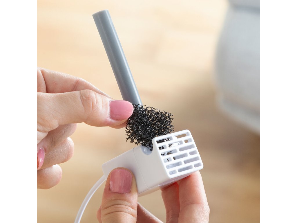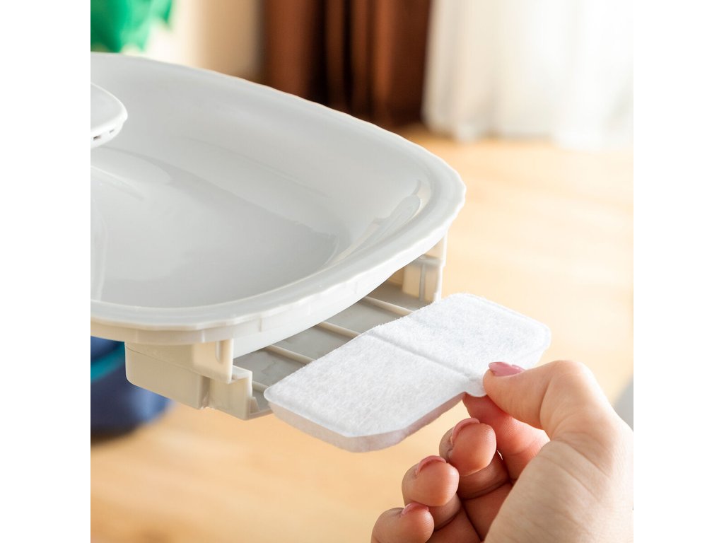 Tato fontánka pro výdej vody pro zvířata funguje přes USB připojení. Způsob proudění vody lze změnit odstraněním uzávěru výtoku nebo úplným odstraněním výtoku. Přední hledáček vám umožňuje zobrazit množství zbývající vody, takže fontánu lze v případě potřeby doplnit. Pokud voda dosáhne minimální úrovně, fontána se automaticky zastaví, dokud se znovu nenaplní. Pro optimální hygienu je vhodné fontánu čistit a měnit vodu alespoň jednou týdně.