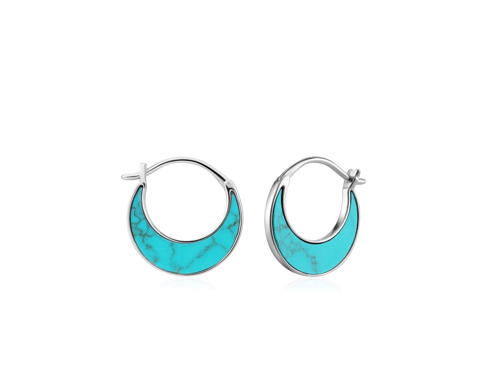 Dámské náušnice Ania Haie E027-07H Mincovní stříbro Tyrkysová modrá (3 cm)