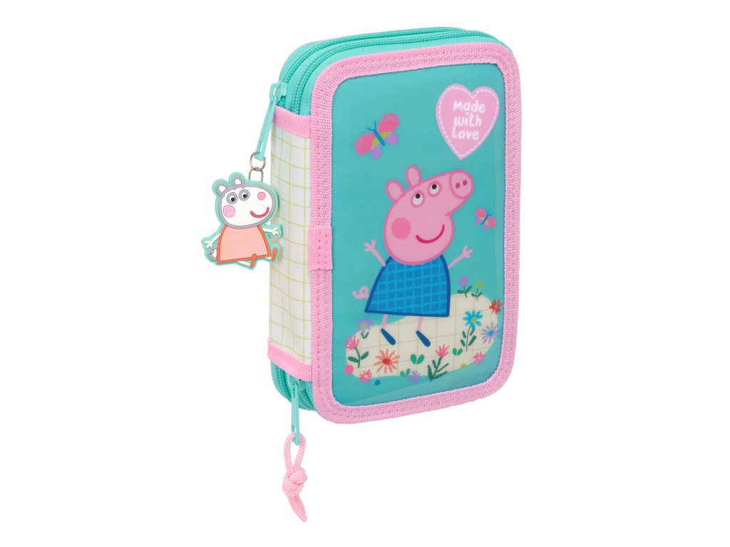 Dvojitý penál Peppa Pig Pretty flowers Žlutá Mátová (28 Kusy) (12,5 x 19,5 x 4 cm)
