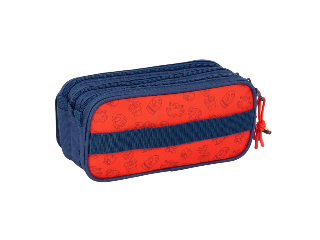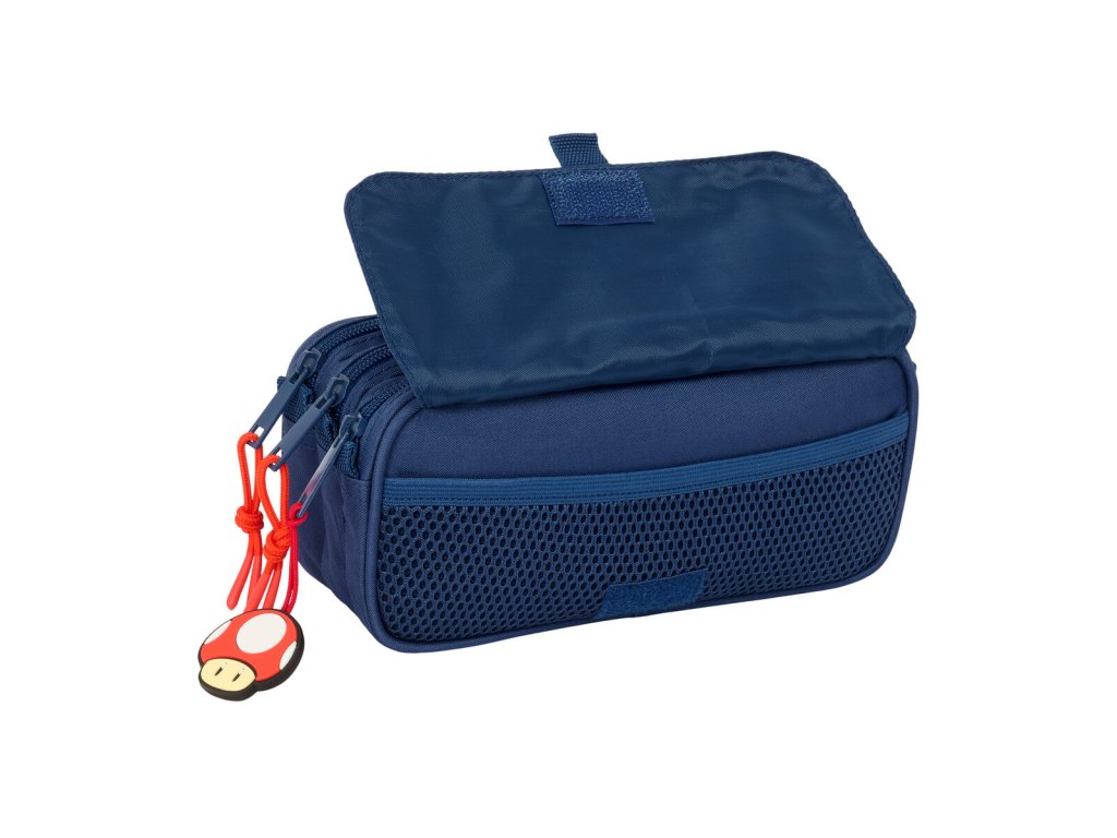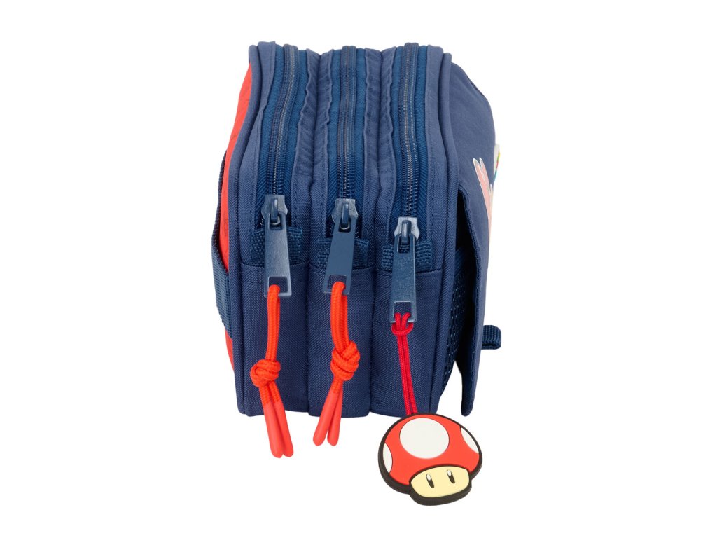 Trojitý penál s přední kapsou Super Mario Trick Červená Tmavě modrá (21,5 x 10 x 8 cm)