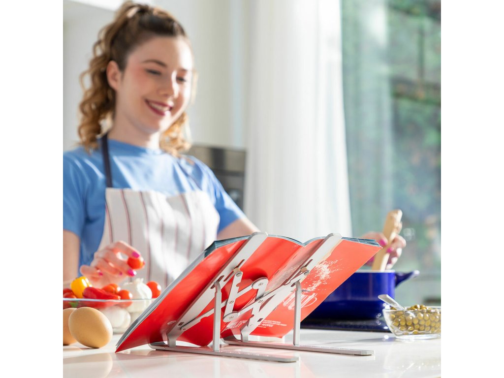 - Víceúčelový, všestranný: díky svým vlastnostem a výhodám je tento přenosný stojan velmi praktický a všestranný a je vhodný pro řadu zařízení, jako jsou notebooky, tablety, čtečky elektronických knih, mobilní telefony a dokonce i knihy atp. Ideální pro kanceláře a práci na dálku, neboť zlepšuje ergonomii polohy sezení tím, že umožňuje pohodlnější a správné držení těla.