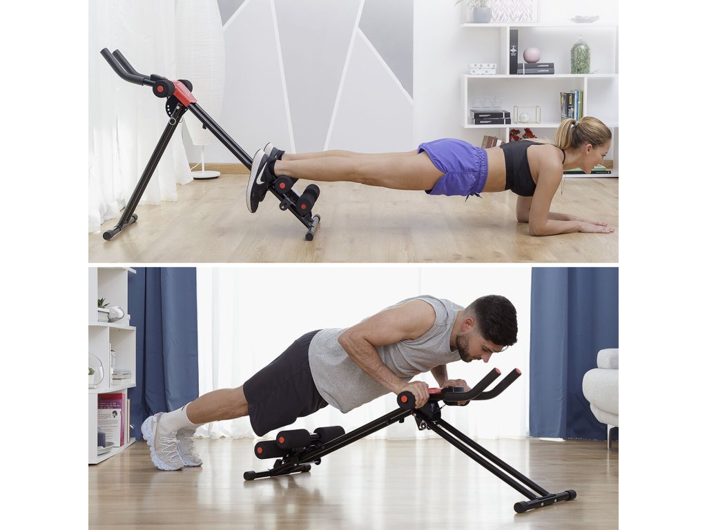 Ideální pro zlepšení vaší postavy a fyzické zdatnosti.Skládací stroj na břicho s návodem na cvičení, který je ideální k tomu, abyste si posilovnu přenesli domů a dostali se do formy jako skutečný fitness profesionál. Jelikož je skládací, velmi snadno se přenáší a skladuje a šetří místo. Jeho multifunkční a vícepolohový design vám umožňuje provádět řadu cvičení v různých pozicích (cvičení na břicho, bříšáky s jednou nebo dvěma nohama, boky, dřepy, kliky, zdvihy nohou, plank atd.) k procvičení různých oblastí. těla (střed a spodní část těla, břicho, ruce, nohy, hýždě, hrudník, pas, ramena, záda atd.). Ideální pro zpevnění a tónování svalů těla jako celku, zejména pro práci v oblasti břicha. Tento všestranný stroj na břicho je ergonomický, unisex a vhodný pro všechny úrovně (začátečník, středně pokročilý, pokročilý, intenzivní trénink...). Úhel sklonu lze upravit, abyste zvýšili nebo snížili stupeň obtížnosti. Je vybaven LCD obrazovkou a počítadlem aktivity pro měření počtu opakování za minutu, celkového počtu opakování, času cvičení a spálených kalorií, které se po určité době nečinnosti automaticky vypínají. Podporuje maximální hmotnost cca. 120 kg a poskytuje pevné držení. Snadno se montuje podle přiloženého návodu k montáži.