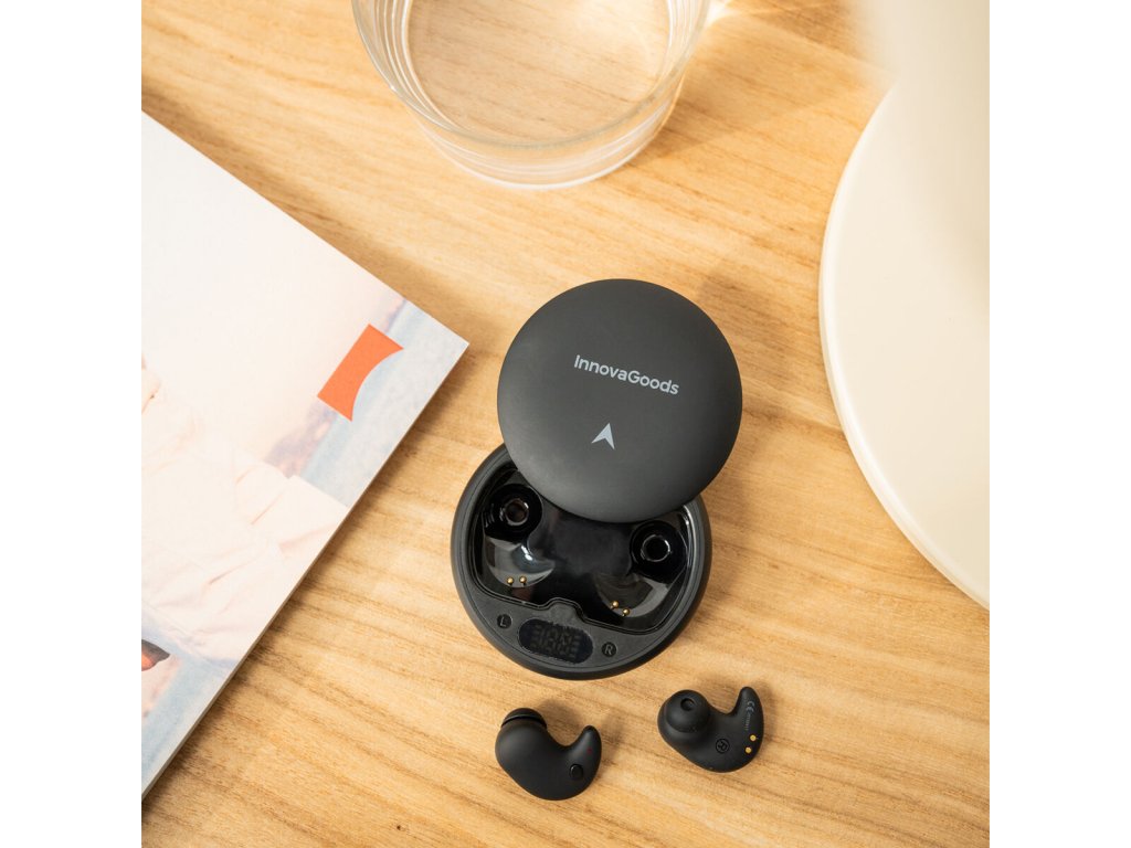 Mini bezdrátová sluchátka s Bluetooth do uší na spaní Sonighty InnovaGoods Černá se zcela zanoří do ucha, nabízejí nejvyšší pohodlí a kvalitní zvuk. Zahrnují nabíjecí pouzdro s LCD displejem, kabel USB-C, 2 silikonové návleky na náušníky, Bluetooth 5.4.Bezdrátová sluchátka s Bluetooth mají ergonomický design, takže nepůsobí potíže ani při ležení na boku. Jsou ideální pro spánek, ale i práci, sport atp.