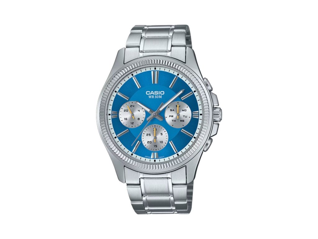 Pokud sledujete trendy v oblasti módy a doplňků, nakupujte Pánské hodinky Casio DAY DATE MULTIFUNCTION Stříbřitý (Ø 43,5 mm) (Ø 43,8 mm) za nejlepší ceny.DAY DATE MULTIFUNCTION značky Casio je pánské hodinky navrženy tak, aby nabízely funkčnost a odolnost v robustním a elegantním designu. Tento model kombinuje několik základních funkcí včetně data , chronografu a multifunkce , čímž poskytuje komplexní zážitek pro uživatele, který vyžaduje přesnost a všestrannost v jednom zařízení. Jeho nerezový ocelový řemínek zaručuje odolnost a klasický vzhled, ideální pro každodenní nošení i do formálních prostředí, zatímco pouzdro také z nerezové oceli chrání před opotřebením, dodává pevnost a lesklý povrch, který udržuje profesionální vzhled hodinek dlouhodobě. Kombinace těchto materiálů zajišťuje nejen delší životnost, ale také jednoduchou údržbu a vyváženou hmotnost pro pohodlné nošení. Navrženo speciálně pro muže, design zohledňuje proporce a styl, které vyhovují většině mužských zápěstí, přičemž udržuje rovnováhu mezi funkčností a vizuální přítomností na ruce. Integrovaný chronograf umožňuje přesné měření časových intervalů, což je užitečné při sportovních aktivitách i běžných situacích vyžadujících časovou kontrolu. Funkce data poskytuje jasné a rychlé zobrazení dne v měsíci, doplňujíc intuitivně zobrazované informace. Multifunkční charakter hodinek znamená, že kromě základních funkcí může zařízení zobrazovat další údaje nebo přepínat mezi režimy, čímž zvyšuje užitečnost pro uživatele, kteří oceňují všestranná a jednoduchá zařízení. Tento model Casio tak představuje rovnováhu mezi praktickou funkčností, odolným designem a decentním stylem, což z něj činí vhodnou volbu pro ty, kteří hledají spolehlivý a trvanlivý doplněk s nezbytnými funkcemi pro každý den.